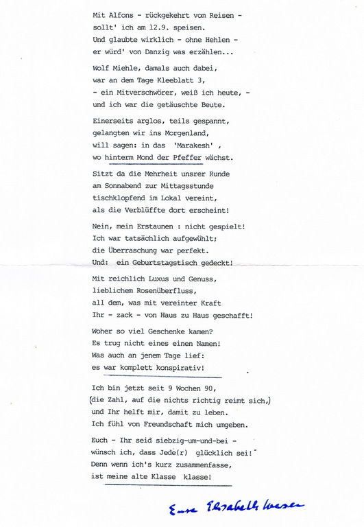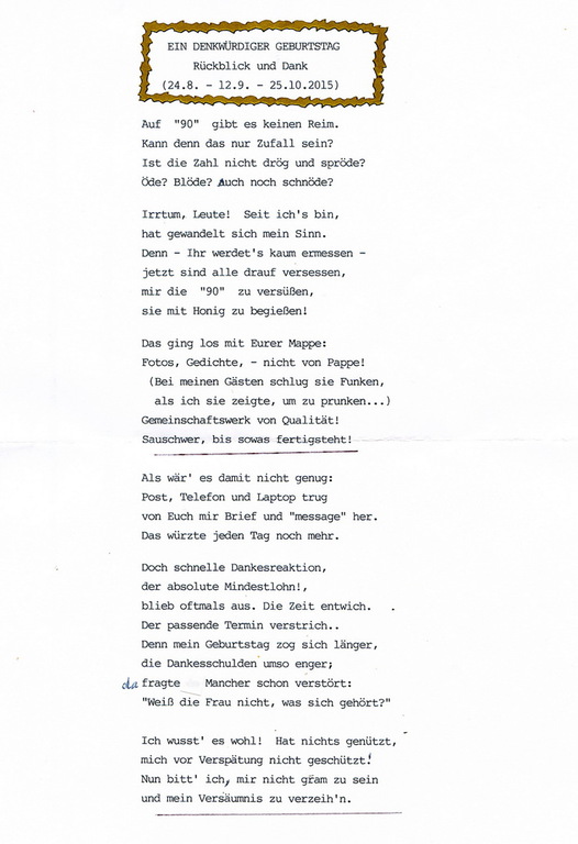 Neunzigster Geburtstag von Frau Iversen am 12.9.2015